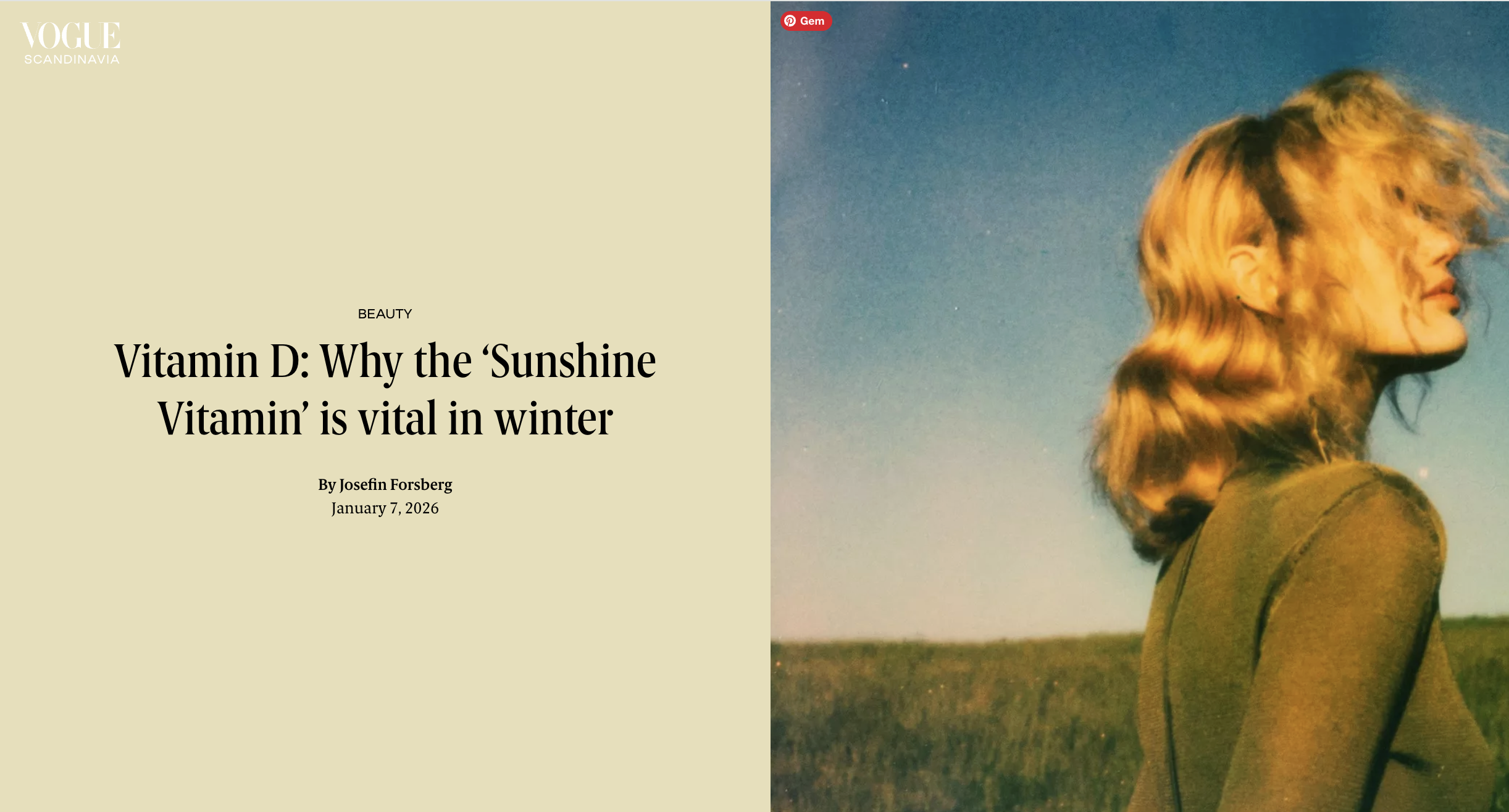 Read the 2026 updated article I was interviewed for by VOGUE here: https://www.voguescandinavia.com/articles/why-you-need-vitamin-d-and-the-best-supplements-to-take