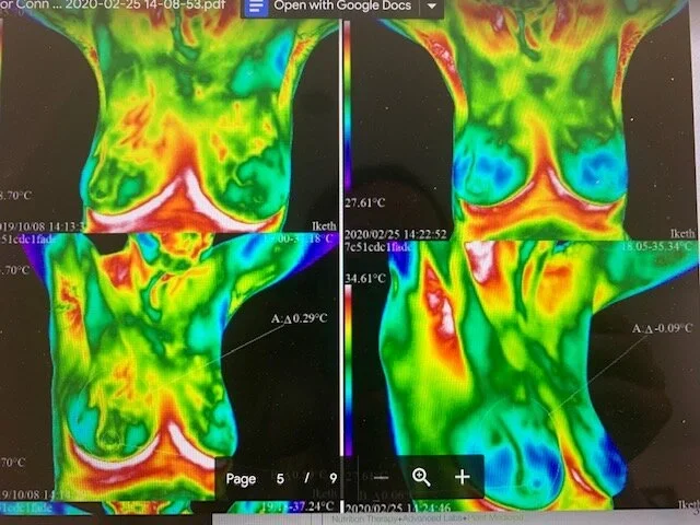 Here is another client case which shows significant improvement in as little as 4 months (October to February). Left side is “before” which shows how hormonal disrupting substances are affection her breast tissue and right side shows “after” and reveals drastic improvement. Now this client is also a type-A client, she does everything to the dot and follows-through - reaping the results in short time. In the initial consultation we also lab tested her for hormonal disrupting substances as a thermography scan doesn’t tell WHY, it only tells what things look like in the body - general inflammation and health status. And to treat the cause and not the symptoms, we want to keep asking “why” questions until there are no more questions to ask - so we asked why there might be showing hormonal imbalances in her breast tissue. And that led us to want to test for hormone disrupting substances such as mycotoxins.
